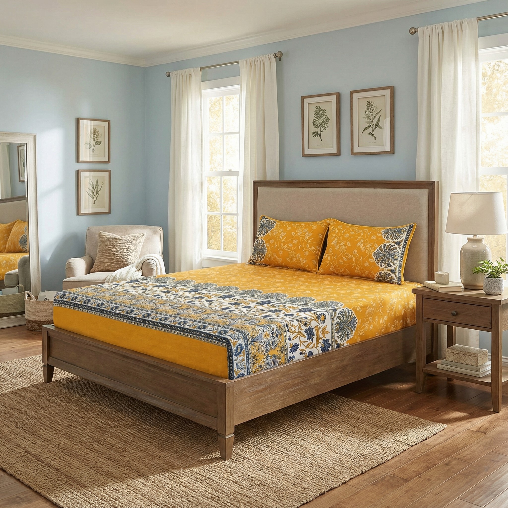 Featuring a modern and stylish design, the bedsheet instantly enhances your room décor 🛏️. The king size fit ensures full mattress coverage, while the matching pillow covers complete the coordinated look. Its vibrant colors and elegant patterns add a touch of sophistication to any interior.