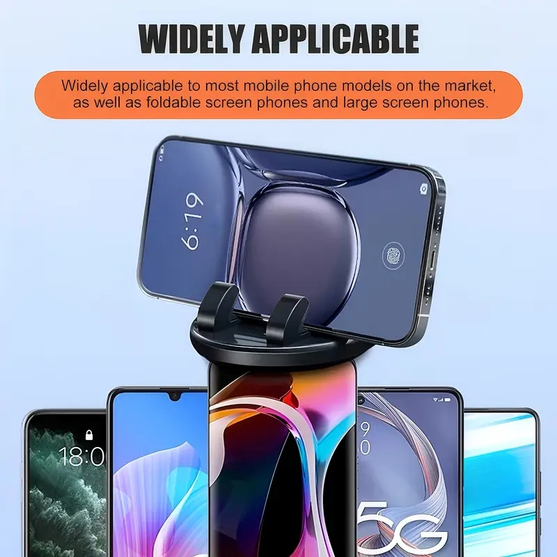 With its 360° rotation feature, you can adjust your phone to any angle—portrait or landscape—making it perfect for GPS navigation, hands-free calls, and streaming music. 🎵📍 Its adjustable clamp fits all smartphone sizes, ensuring a snug and stable grip for devices of any shape or model.